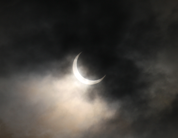 肉眼ではっきりと、欠けている太陽が見えました