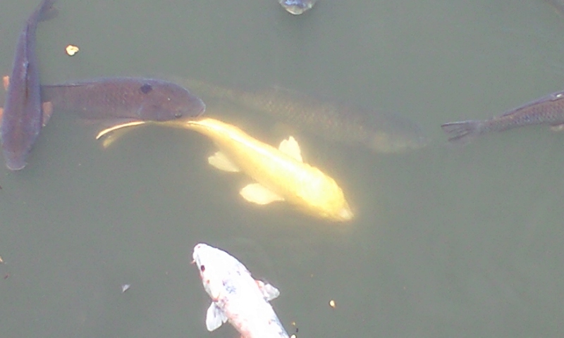 御堀で黄金に輝く鯉も発見